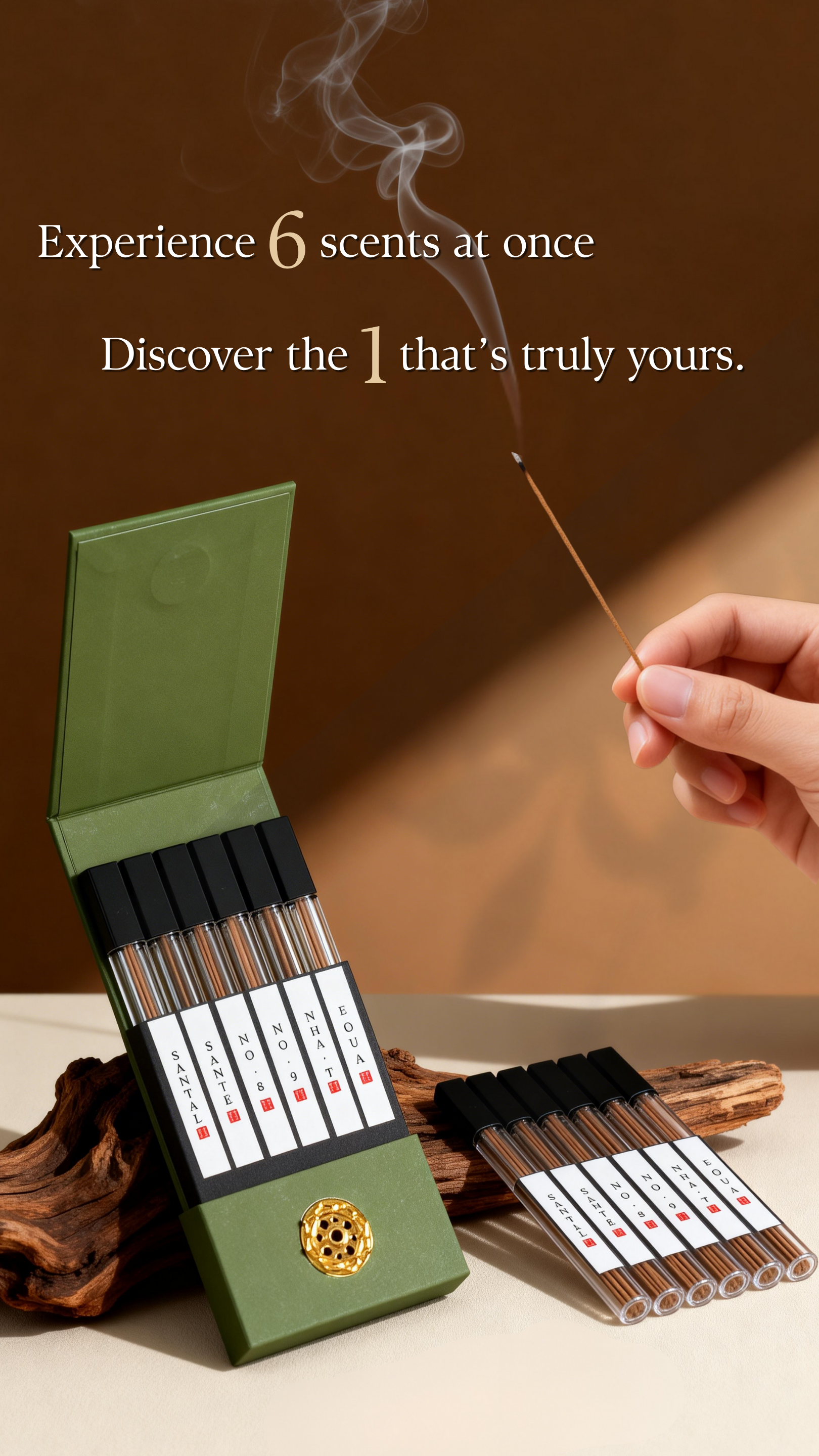 Presented in a light, experiential format, the set introduces the sweetness, coolness, depth, clarity, and creamy warmth of six distinct agarwood origins. Each stick reflects naturally formed resin or mature heartwood with purity and clear regional character.