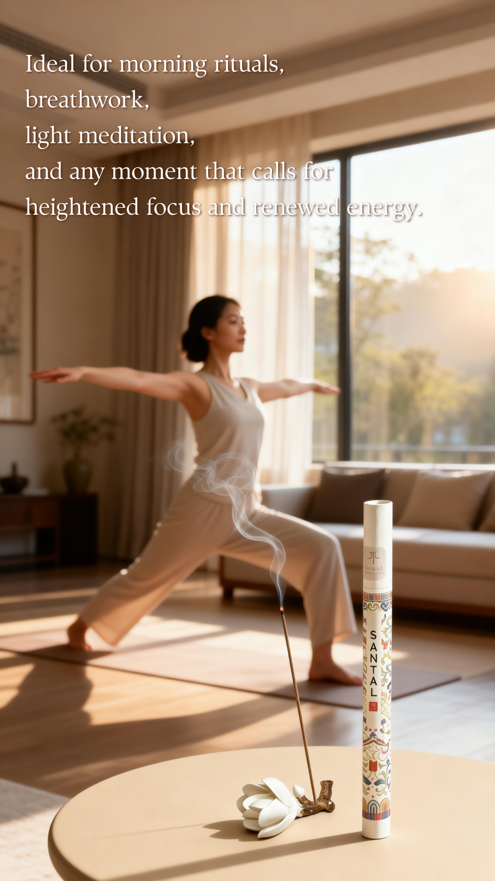 Ideal for mornings: breathwork, light meditation, writing, studying, or beginning the day with clarity and warm energy.